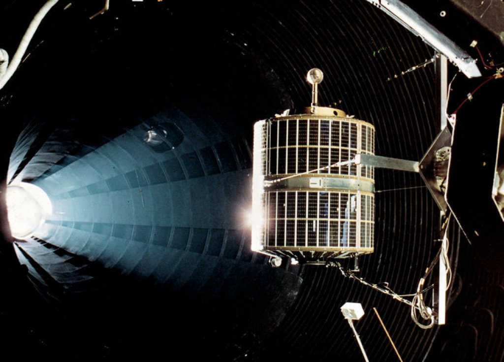 ESRO-1A testas vid rymdtekniska anläggningen ESTEC i Holland 1968. Foto: ESA
